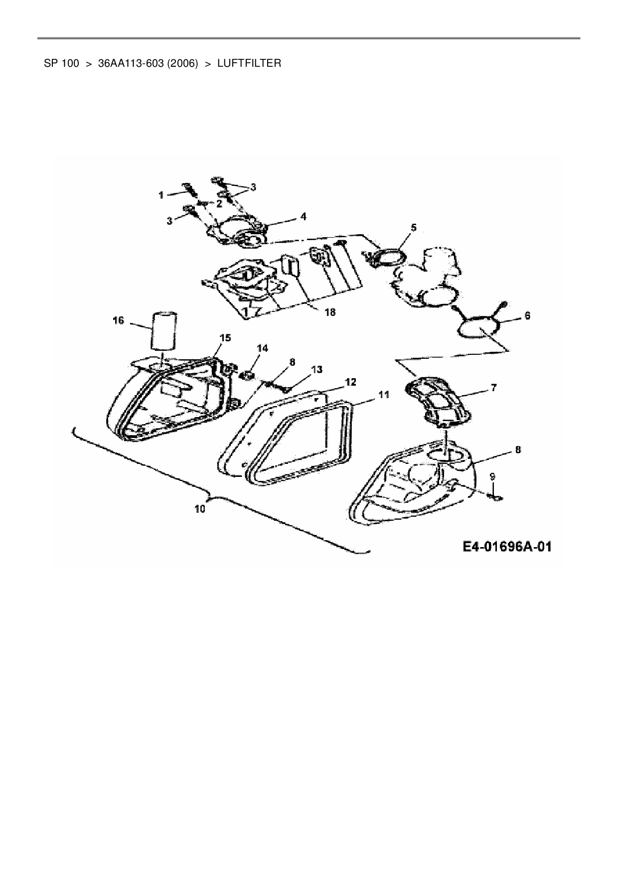 Ersatzteile für Quad Cub Cadet SP 100 aus der Zeichnung Luftfilter: