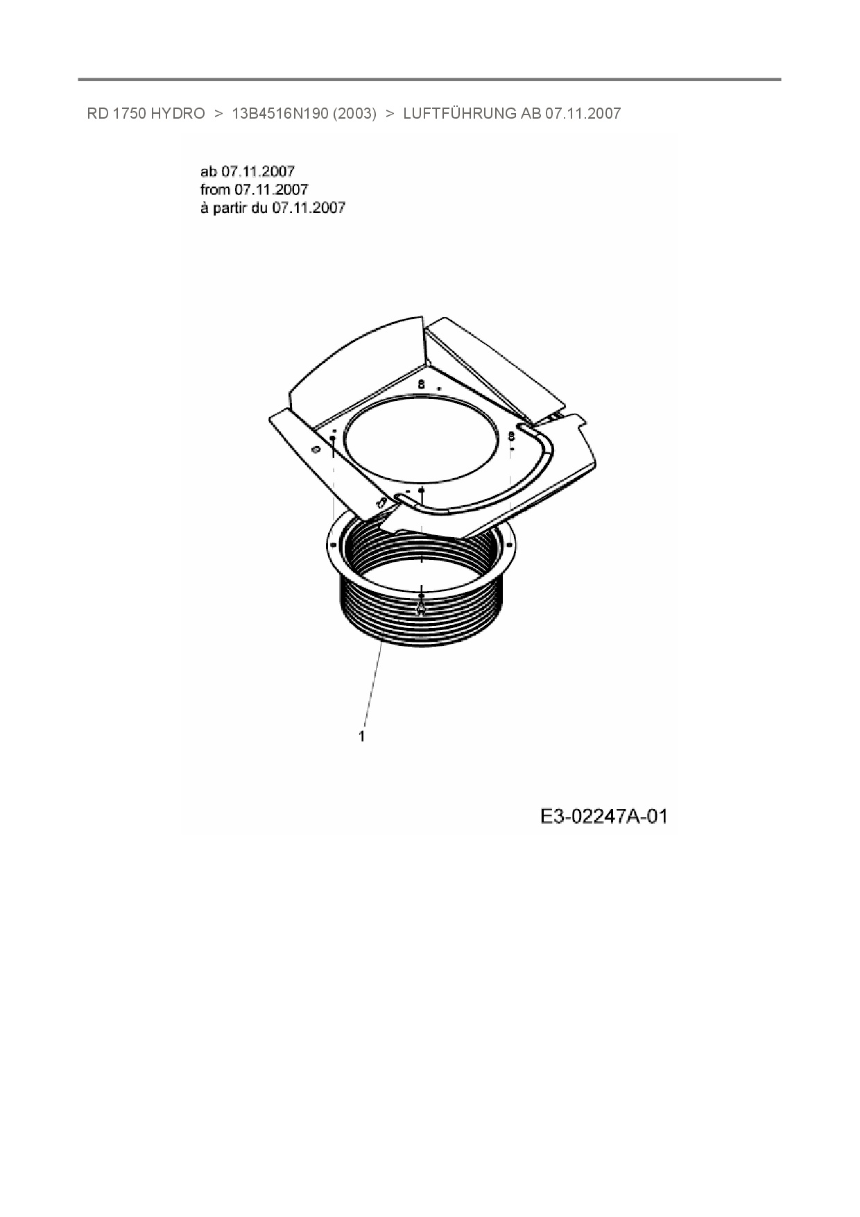 Ersatzteile für Rasentraktor White RD 1750 Hydro aus der Zeichnung Luftführung ab 07.11.2007: