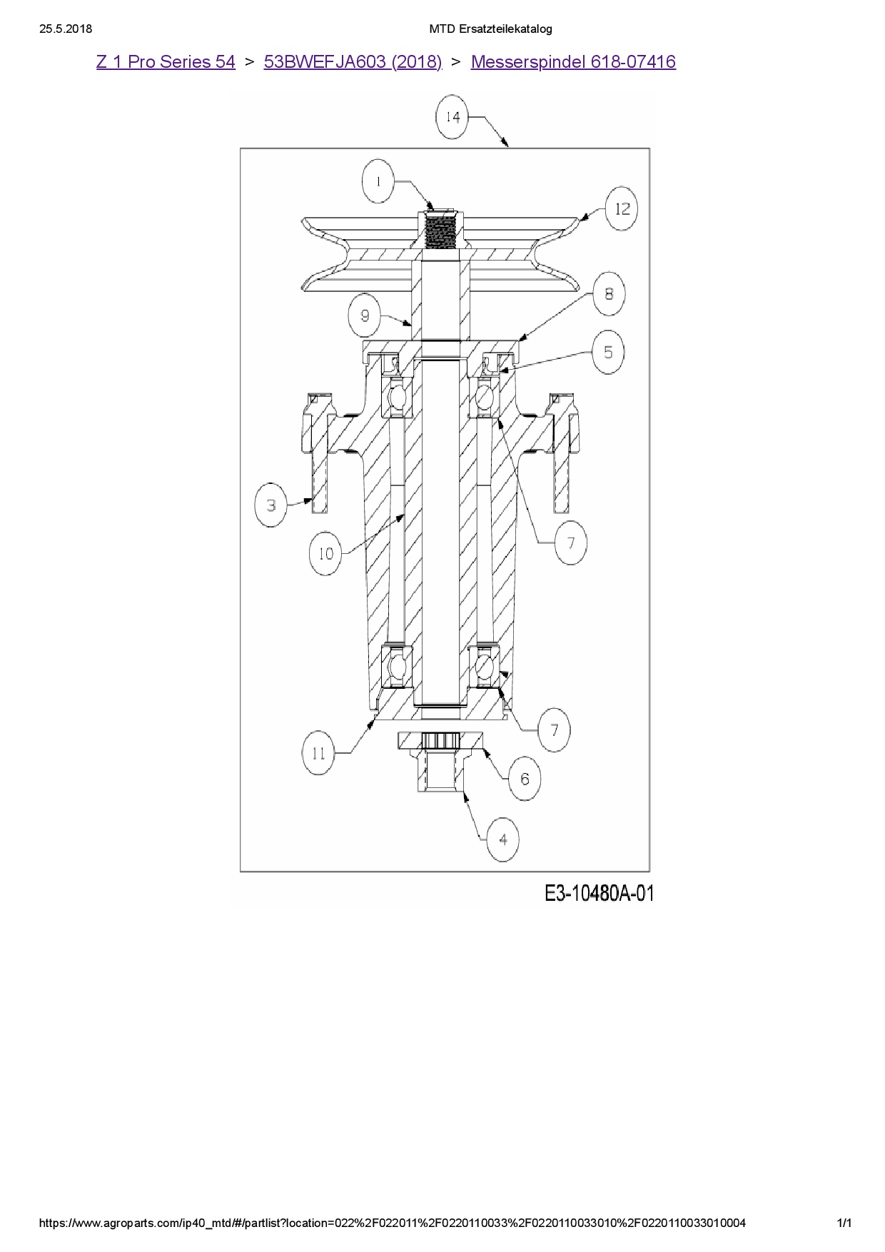 Ersatzteile für ZERO TURN Cub Cadet Z 1 PRO SERIES 54 aus der Zeichnung MESSERSPINDEL 618-07416: