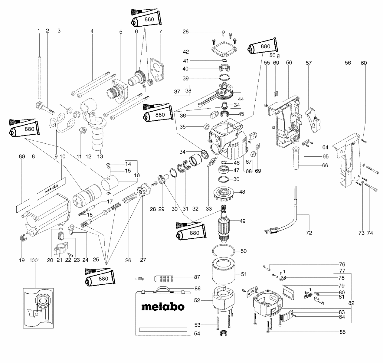 Zeichnung 1 Sollten Sie Fragen zu einem Ersatzteil von Metabo MH E 10 S Bohrhammer 606002000 haben, können Sie uns gerne eine E-Mail (mit einem Foto vom Typenschild Ihres Gerätes) schreiben oder eine Ersatzteilanfrage stellen.