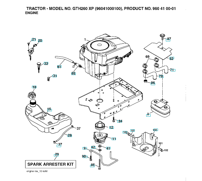 Ersatzteile für Husqvarna Gartentraktor GTH260 XP ( 96041000100, 2006-01 ) MOTOR & SCHNEIDAUSRÜSTUNG:
