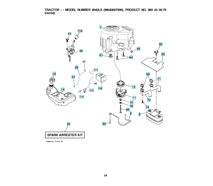 Ersatzteile für Husqvarna Gartentraktoren 2042 LS ( 96043007500, 2008-11 ) MOTOR: