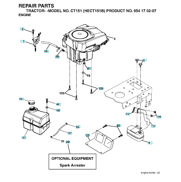 Folgende Ersatzteile für Husqvarna Gartentraktoren CT151 ( ECT151B, 954170207, 2004-06 ) MOTOR können Sie hier bestellen: