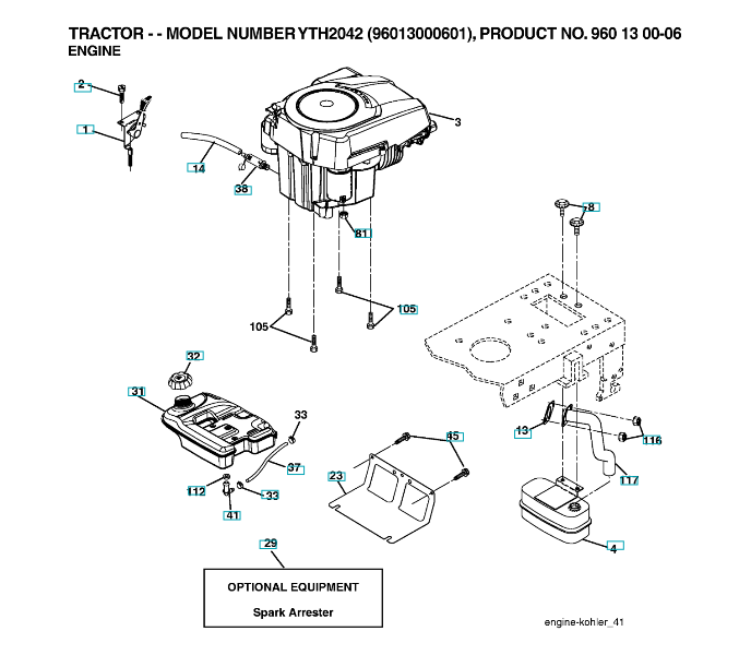Zeichnung für Husqvarna Gartentraktor YTH2042 ( 96013000601, 2005-10 ) MOTOR