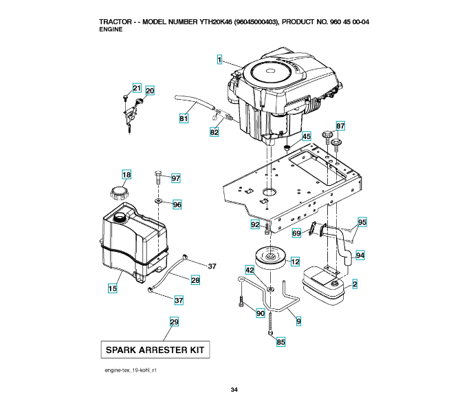 Ersatzteile für Husqvarna Gartentraktor YTH20K46 ( 96045000403, 2007-10 ) MOTOR: