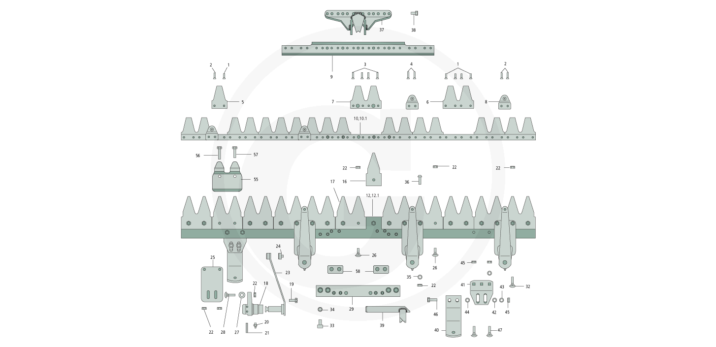 Ab hier finden Sie alle verfügbaren ESM Ersatzteile vom Mähbalken Kommunal C für Nibbi E 7: