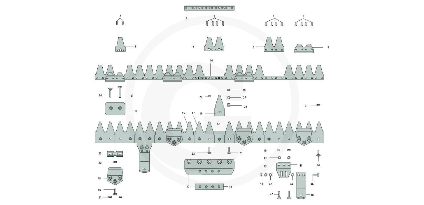 Ab hier finden Sie alle verfügbaren ESM Ersatzteile vom Mähbalken Universal C für Eurogarden Jolly-Super: