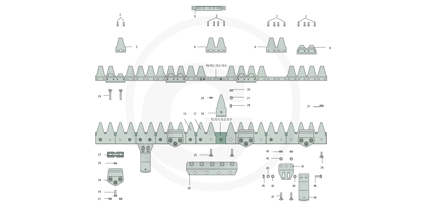 Ab hier finden Sie alle verfügbaren ESM Ersatzteile vom Mähbalken Universal C für Irus S 90: