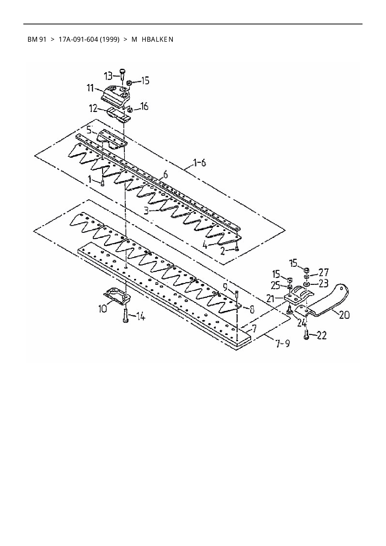 Ersatzteile für Balkenmäher Gutbrod BM 91 aus der Zeichnung Mähbalken:
