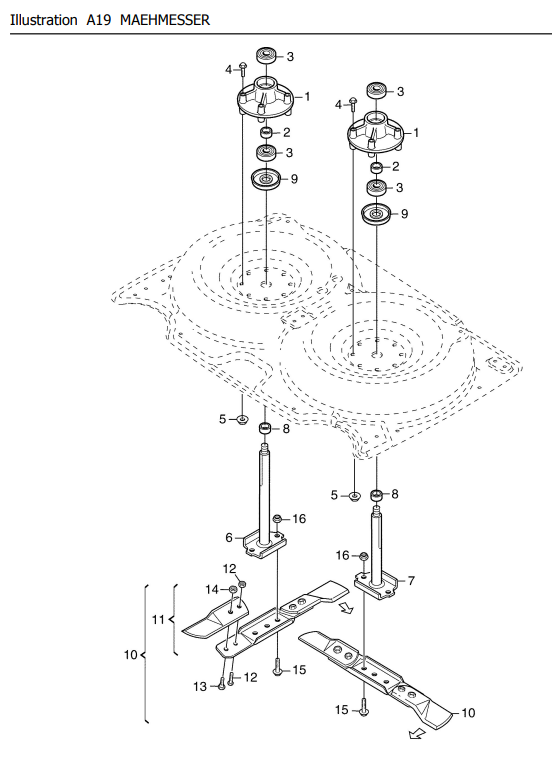 Zeichnung Sabo Rasentraktoren Frontmäher Mähdeck 92M (92-14 HF) Mähmesser: