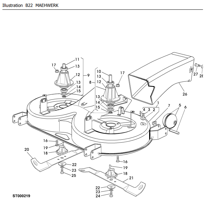 Zeichnung Sabo Rasentraktoren Heckauswurf 102-15 H EDV-NR.SAB00426, SAB00428, SAB00438, SAB00456 Mähwerk (1):