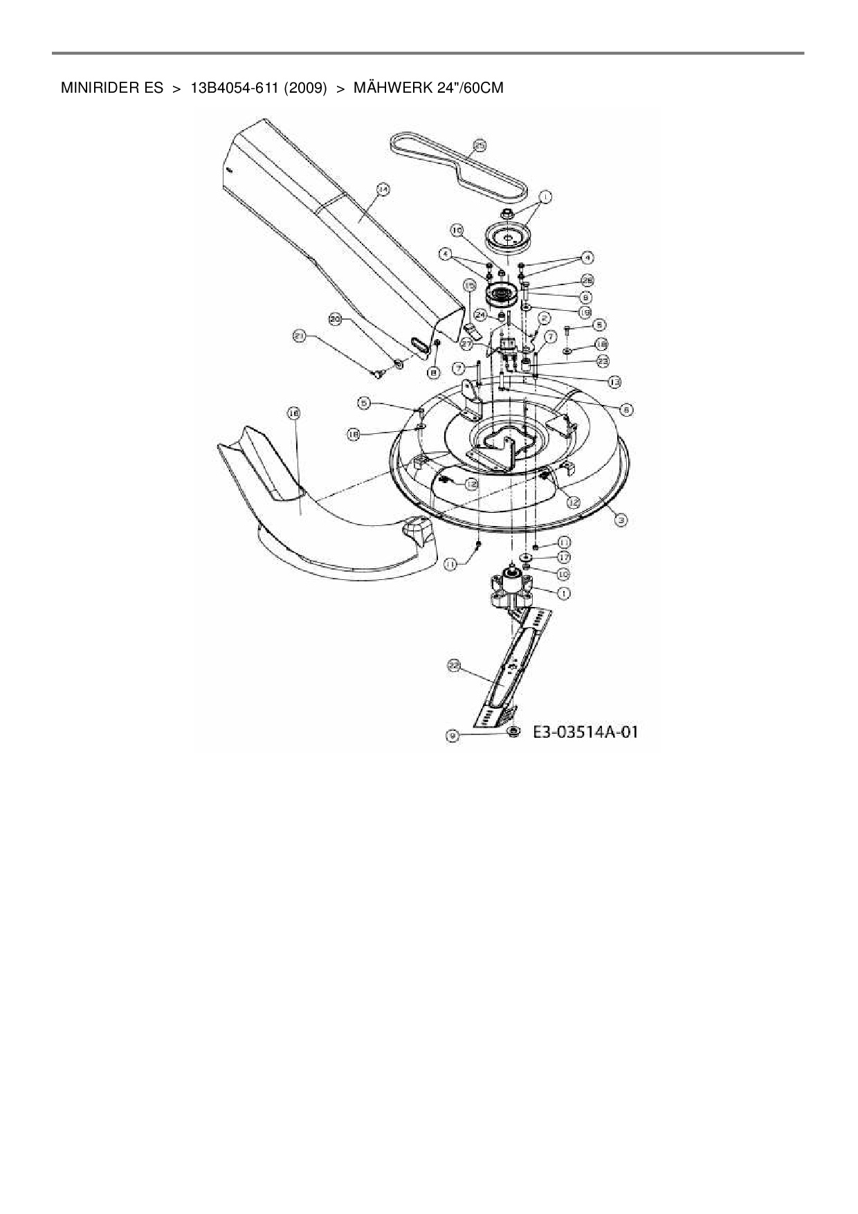 Ersatzteile für Rasentraktor Lawnflite Minirider ES aus der Zeichnung Mähwerk 24"/60cm: