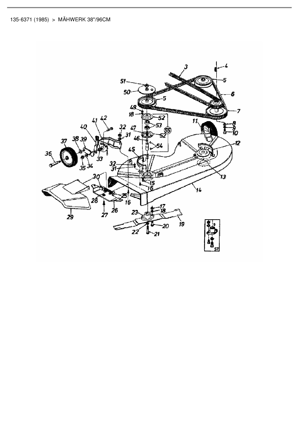 Ersatzteile für Rasentraktor Columbia 110/960 N aus der Zeichnung Mähwerk 38"/96cm: