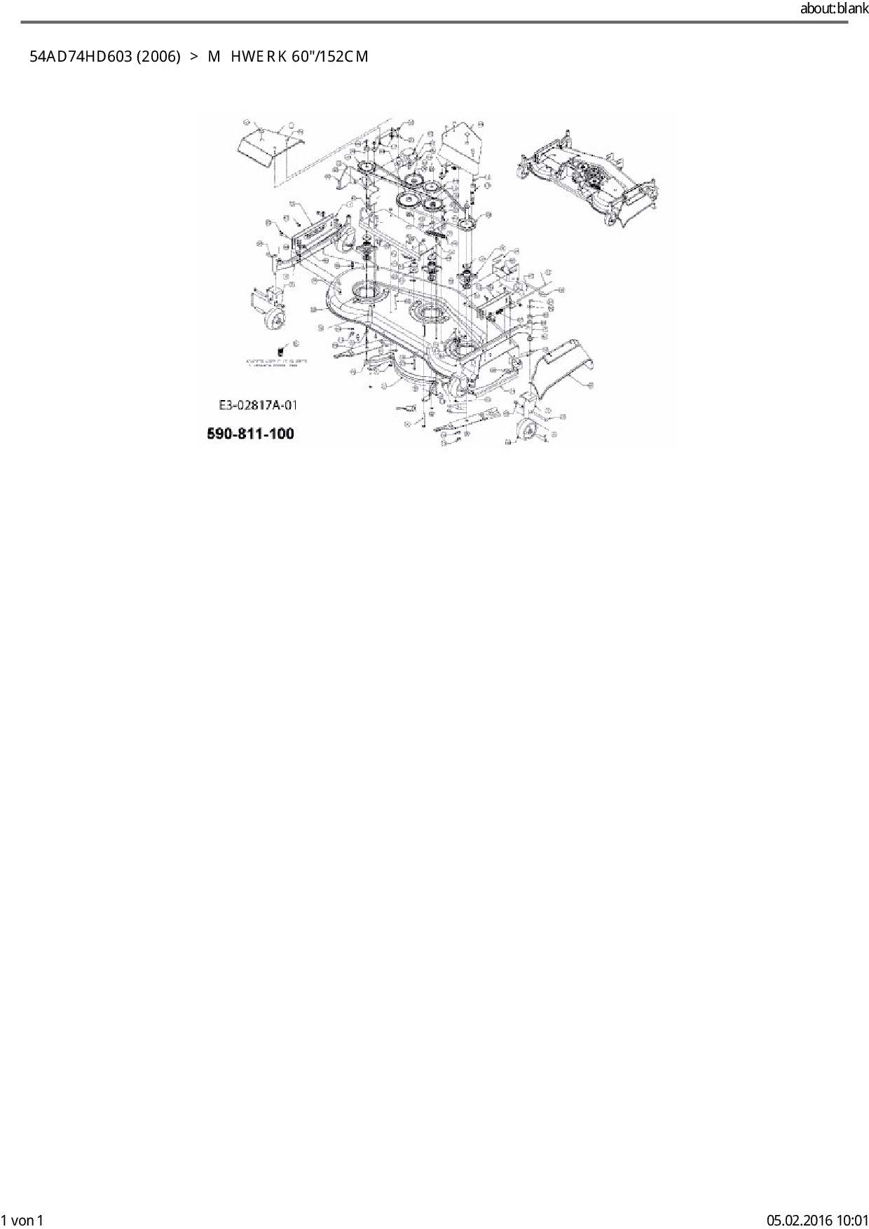 Ersatzteile für Kompakttraktor Cub Cadet HDS 6284 aus der Zeichnung Mähwerk 60"/152cm: