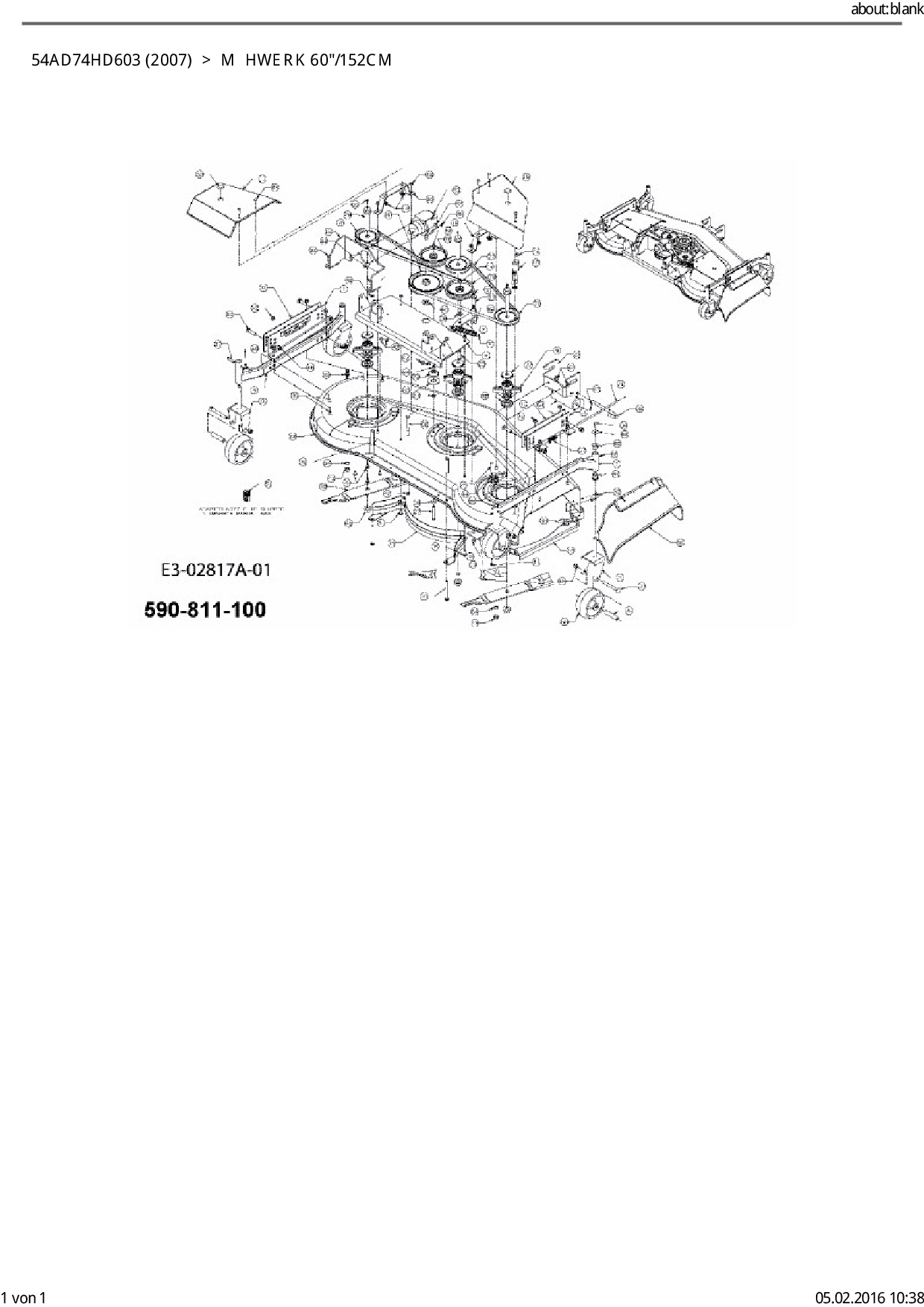 Ersatzteile für Kompakttraktor Cub Cadet HDS 6284 aus der Zeichnung Mähwerk 60"/152cm: