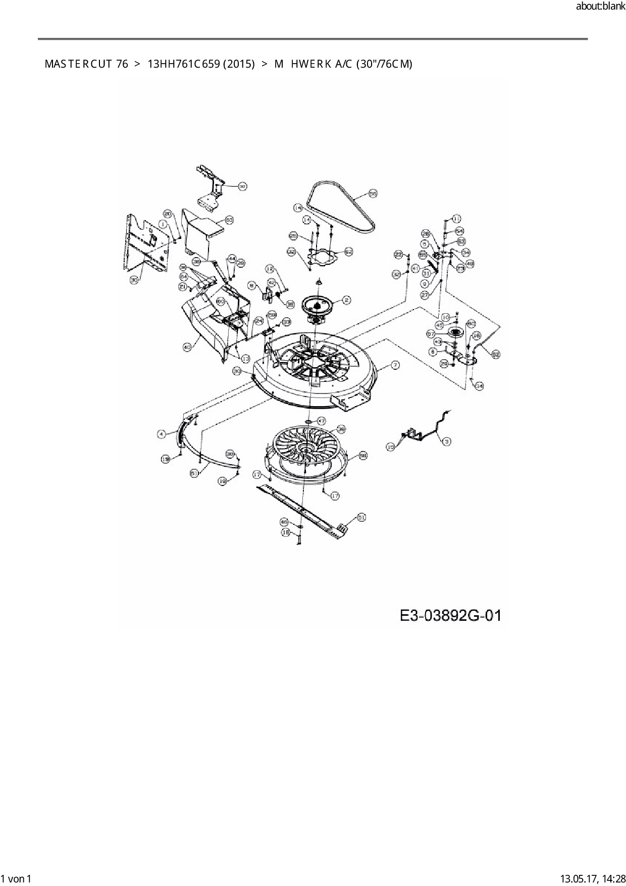 Ersatzteile für Rasentraktor Mastercut Mastercut 76 aus der Zeichnung Mähwerk A/C (30"/76cm):