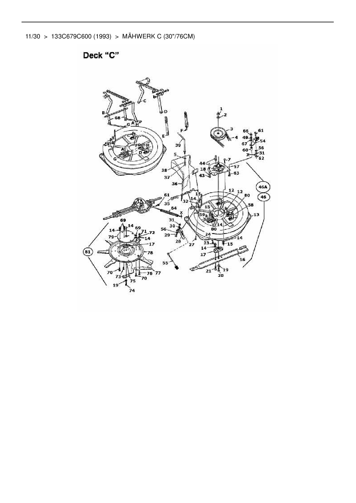 Ersatzteile für Rasentraktor MTD 11/30 aus der Zeichnung Mähwerk C (30"/76cm):