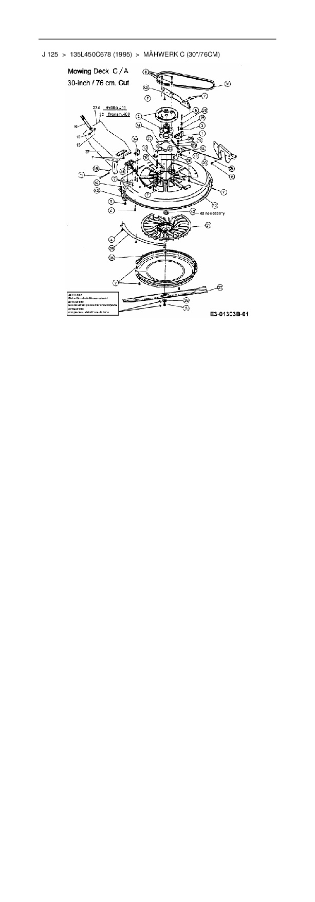 Ersatzteile für Rasentraktor MTD J 125 aus der Zeichnung Mähwerk C (30"/76cm):