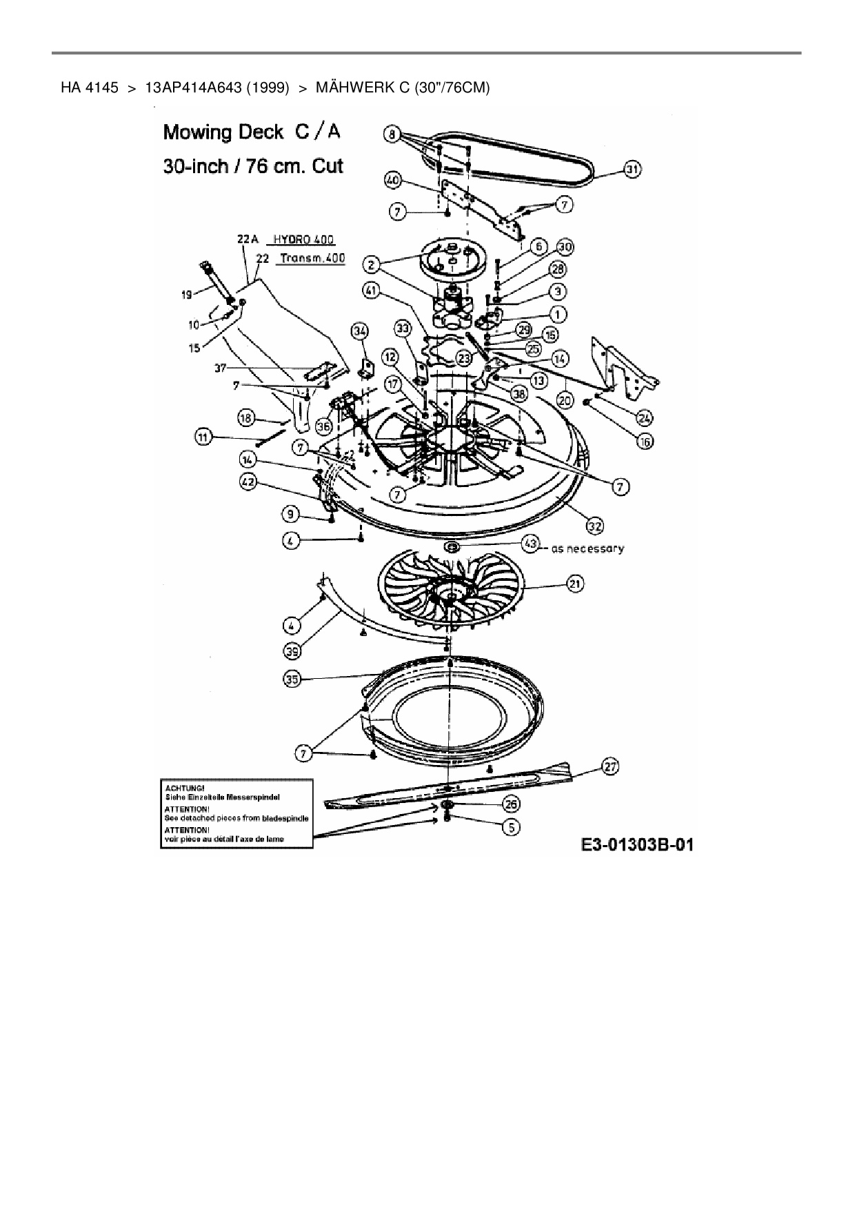 Ersatzteile für Rasentraktor Yard-Man HA 4145 aus der Zeichnung Mähwerk C (30"/76cm):