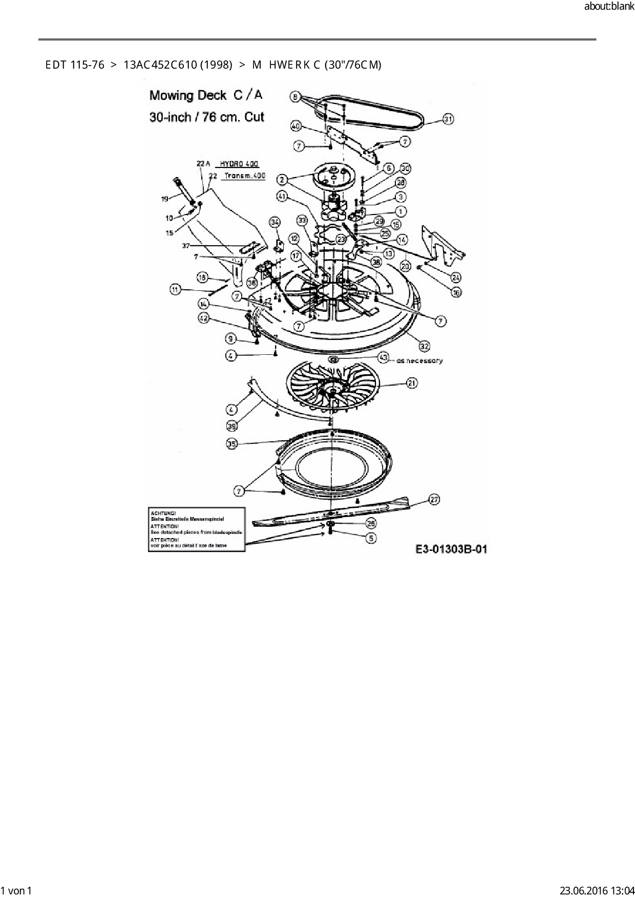 Ersatzteile für Rasentraktor EDT EDT 115-76 aus der Zeichnung Mähwerk C (30"/76cm):