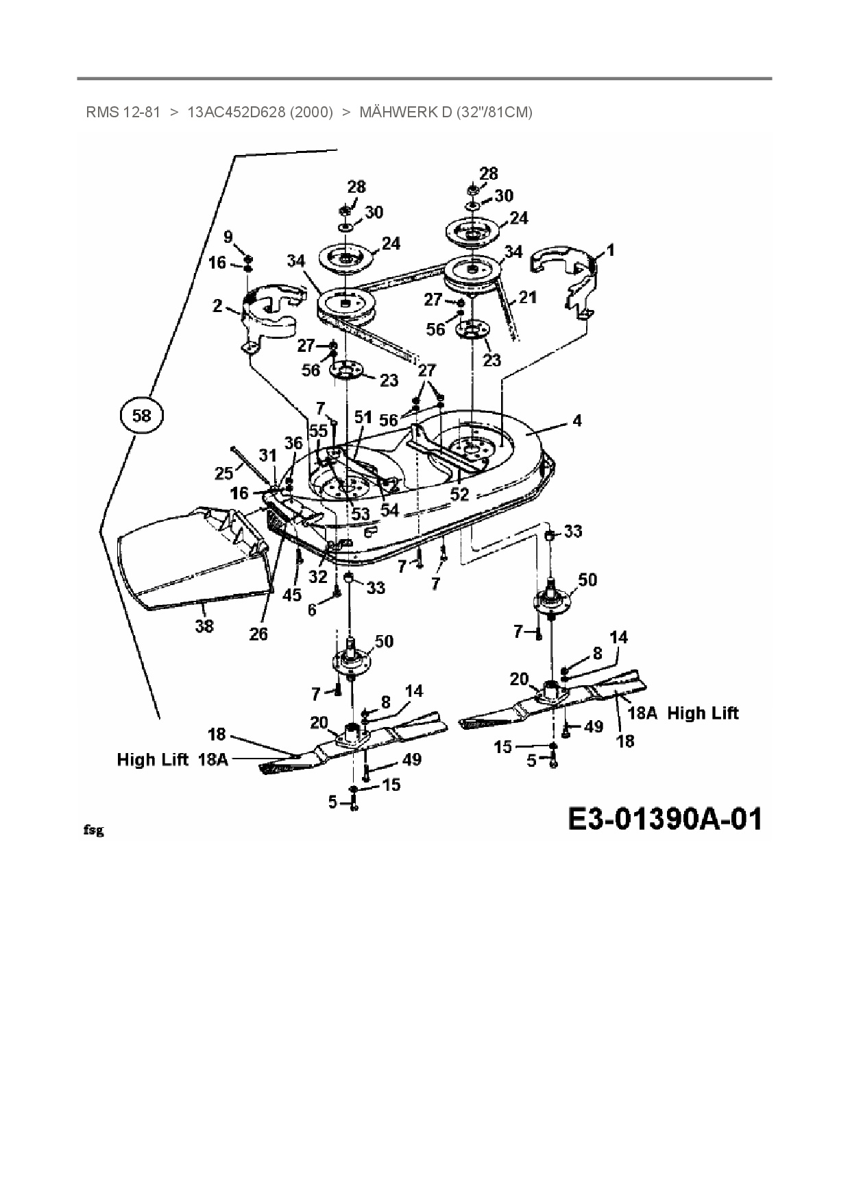 Ersatzteile für Rasentraktor Raiffeisen RMS 12-81 aus der Zeichnung Mähwerk D (32"/81cm):