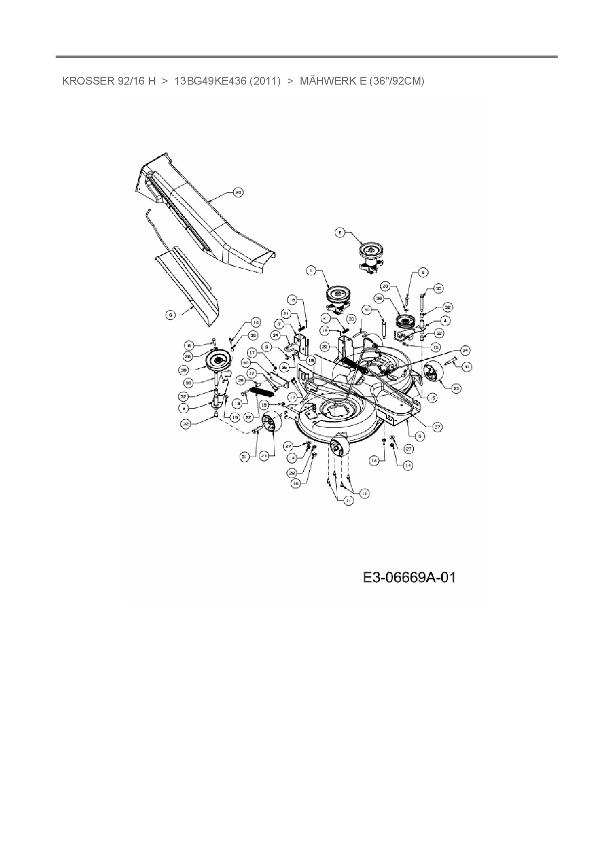 Ersatzteile für Rasentraktor Oleo-Mac Krosser 92/16 H aus der Zeichnung Mähwerk E (36"/92cm) (2):