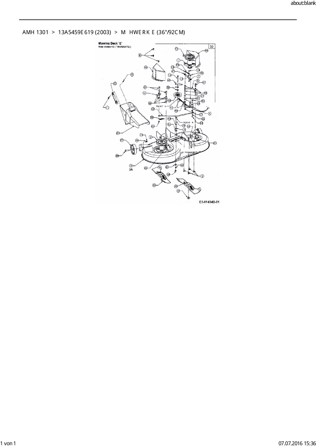 Ersatzteile für Rasentraktor FLEURELLE AMH 1301 aus der Zeichnung Mähwerk E (36"/92cm):