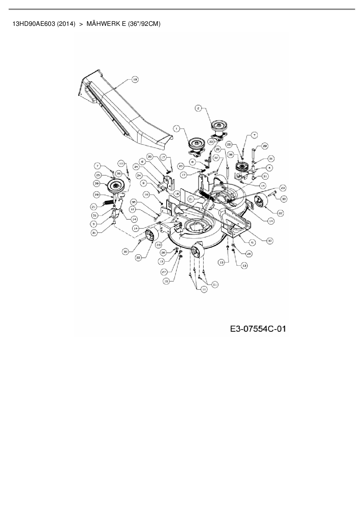 Download Ersatzteil-Zeichnung Cub Cadet CC 1016 AE Zeichnung Mähwerk E (36"/92cm) (PDF-Format)