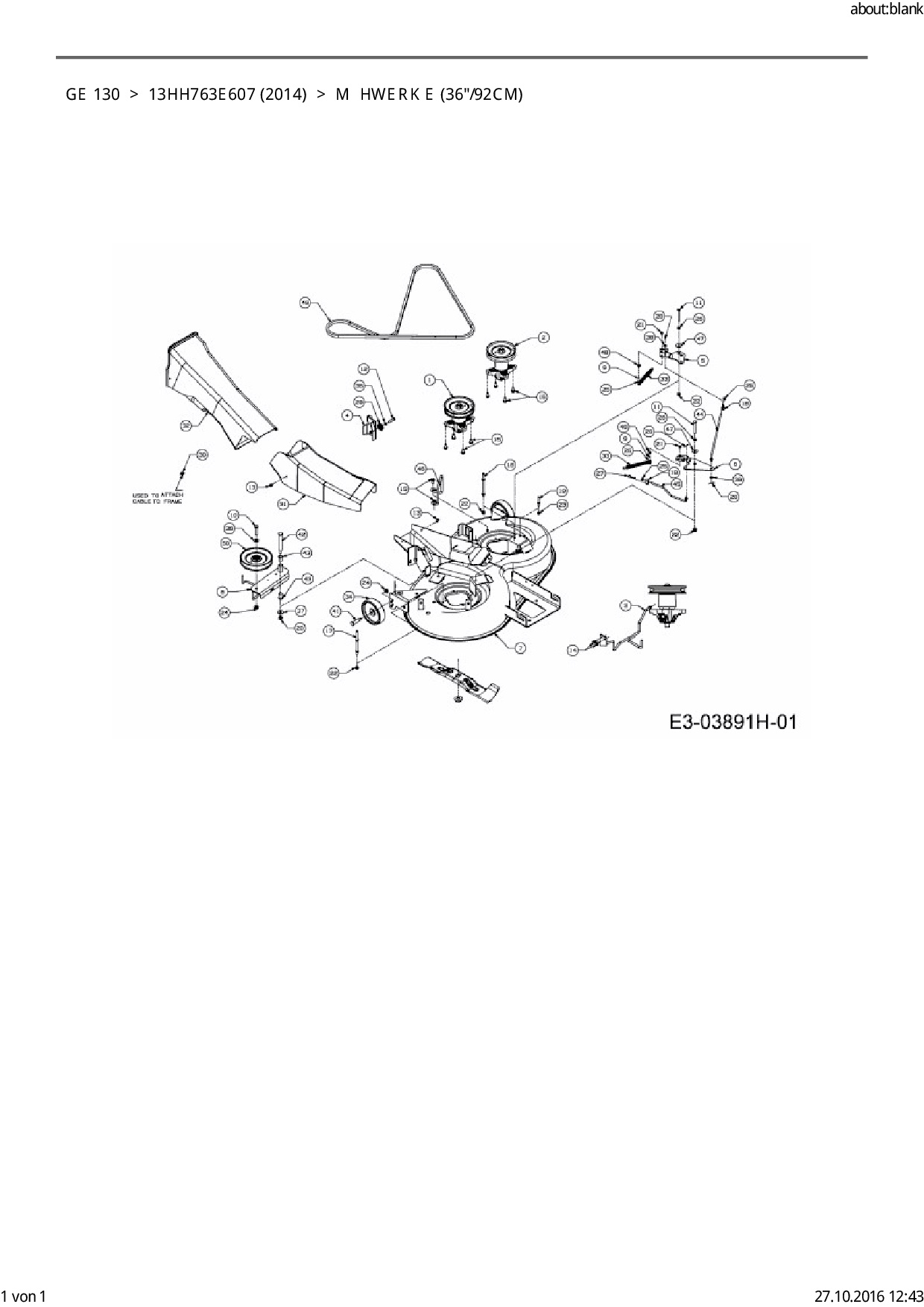 Ersatzteile für Rasentraktor Blisar GE 130 aus der Zeichnung Mähwerk E (36"/92cm):
