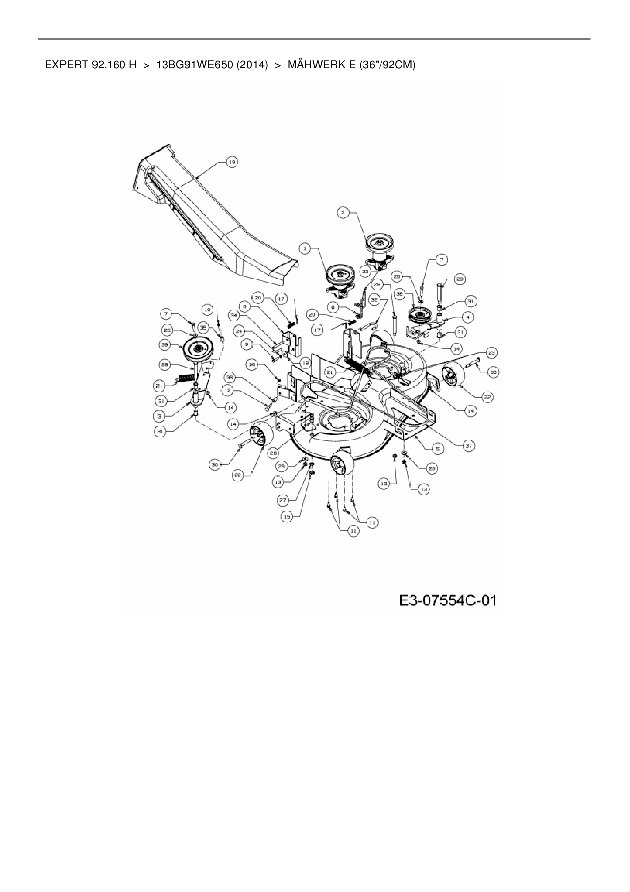 Ersatzteile für Rasentraktor Wolf-Garten Expert Expert 92.160 H aus der Zeichnung Mähwerk E (36"/92cm):