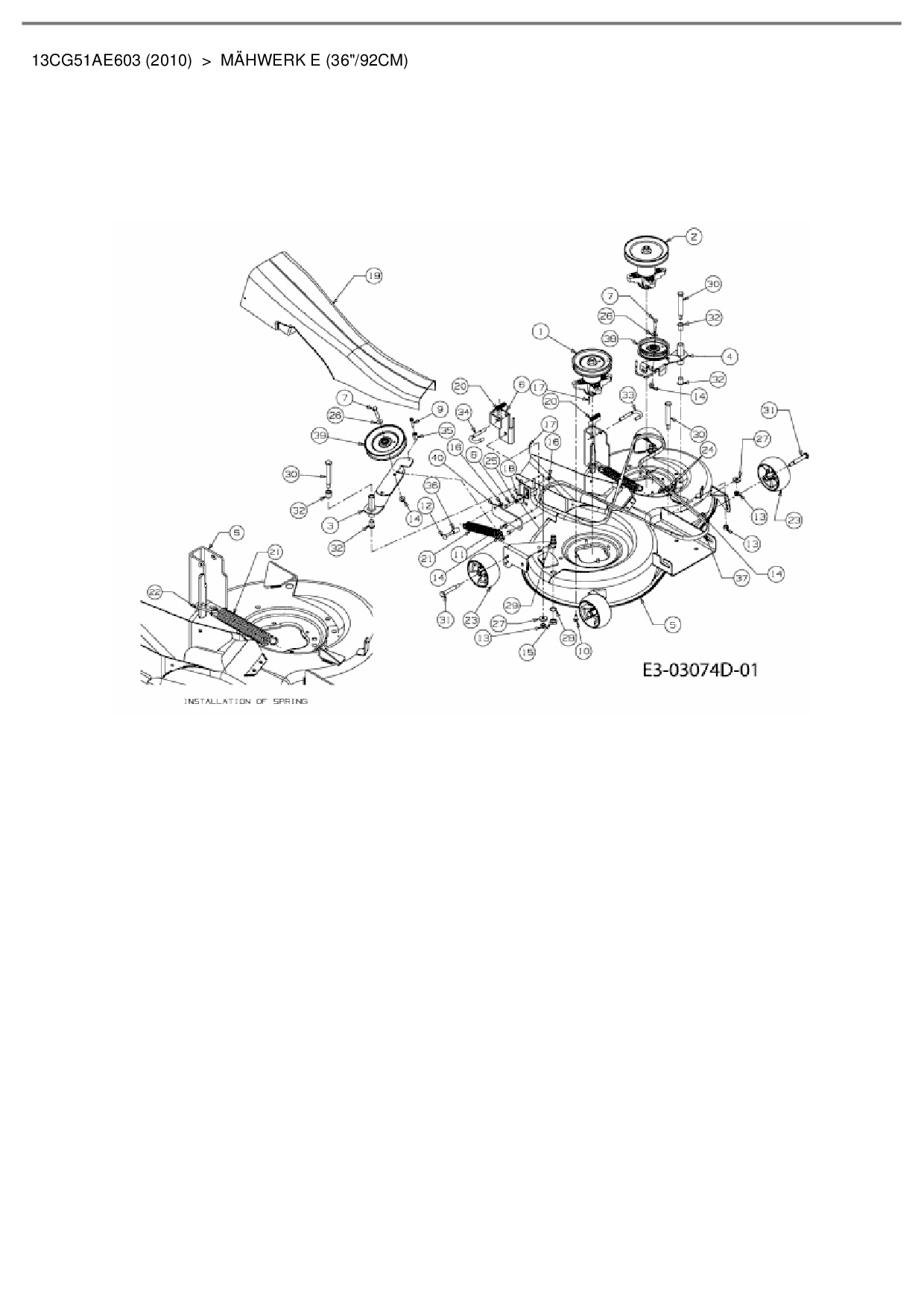 Ersatzteile für Rasentraktor Cub Cadet CC 1016 RD-E aus der Zeichnung Mähwerk E (36"/92cm):