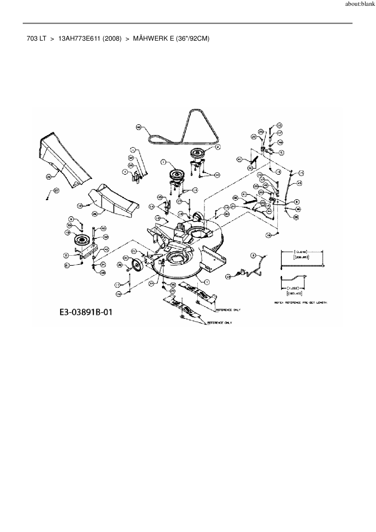 Ersatzteile für Rasentraktor Lawnflite 703 LT aus der Zeichnung Mähwerk E (36"/92cm):