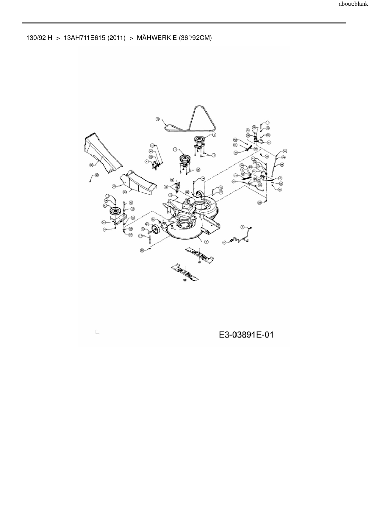 Ersatzteile für Rasentraktor MTD 130/92 H aus der Zeichnung Mähwerk E (36"/92cm):