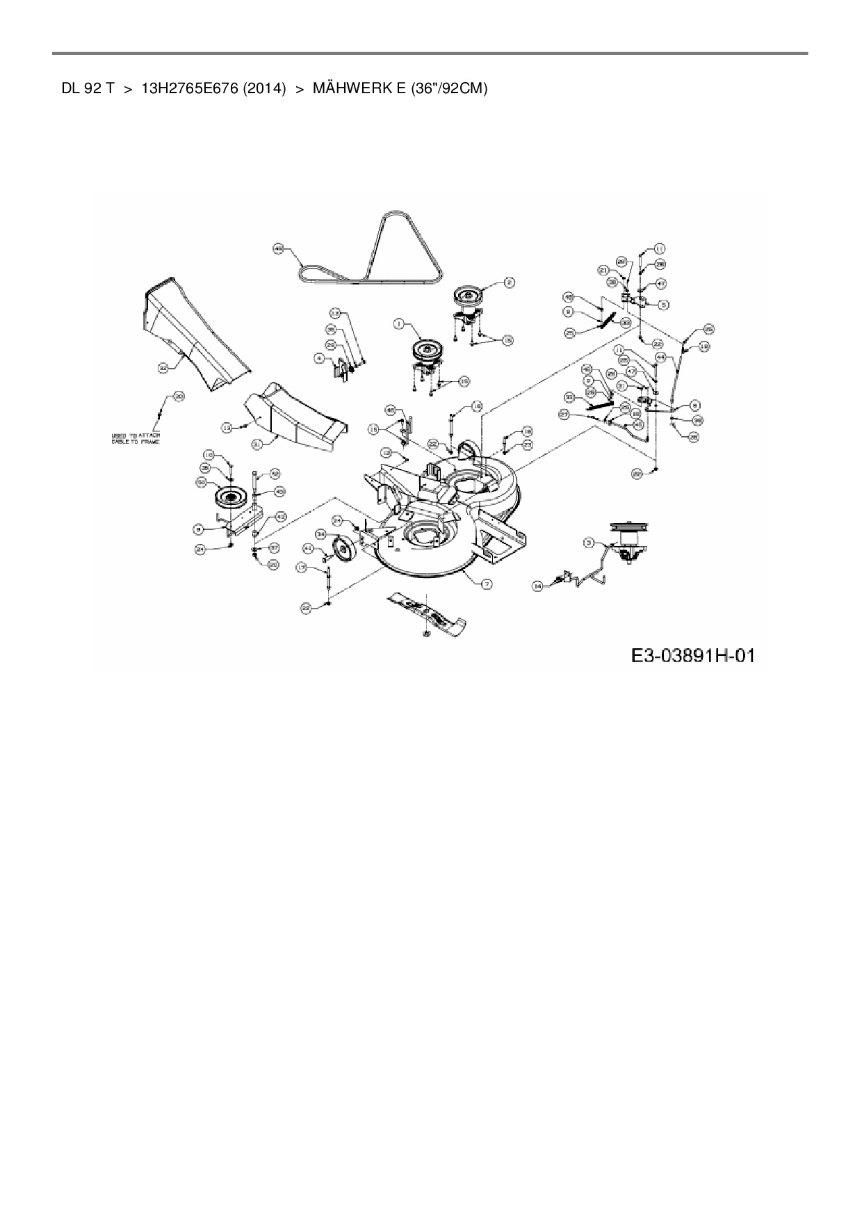 Ersatzteile für Rasentraktor MTD DL 92 T aus der Zeichnung Mähwerk E (36"/92cm):