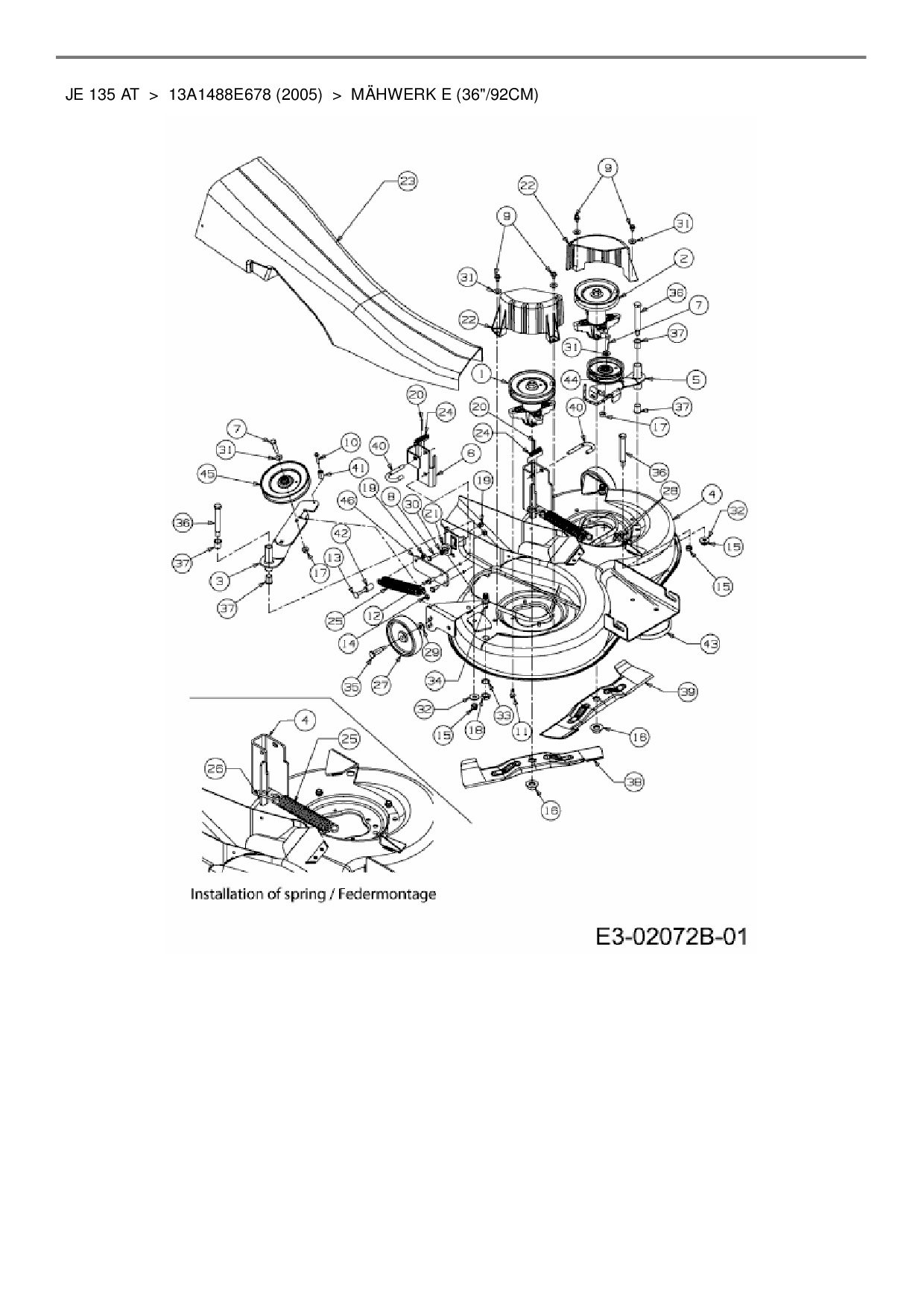 Ersatzteile für Rasentraktor MTD JE 135 AT aus der Zeichnung Mähwerk E (36"/92cm):