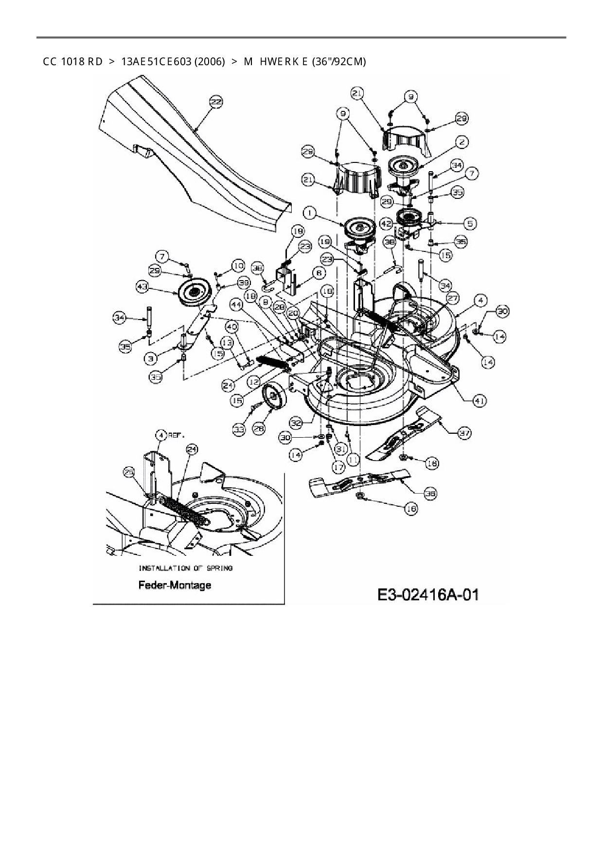 Ersatzteile für Rasentraktor Cub Cadet CC 1018 RD aus der Zeichnung Mähwerk E (36"/92cm):