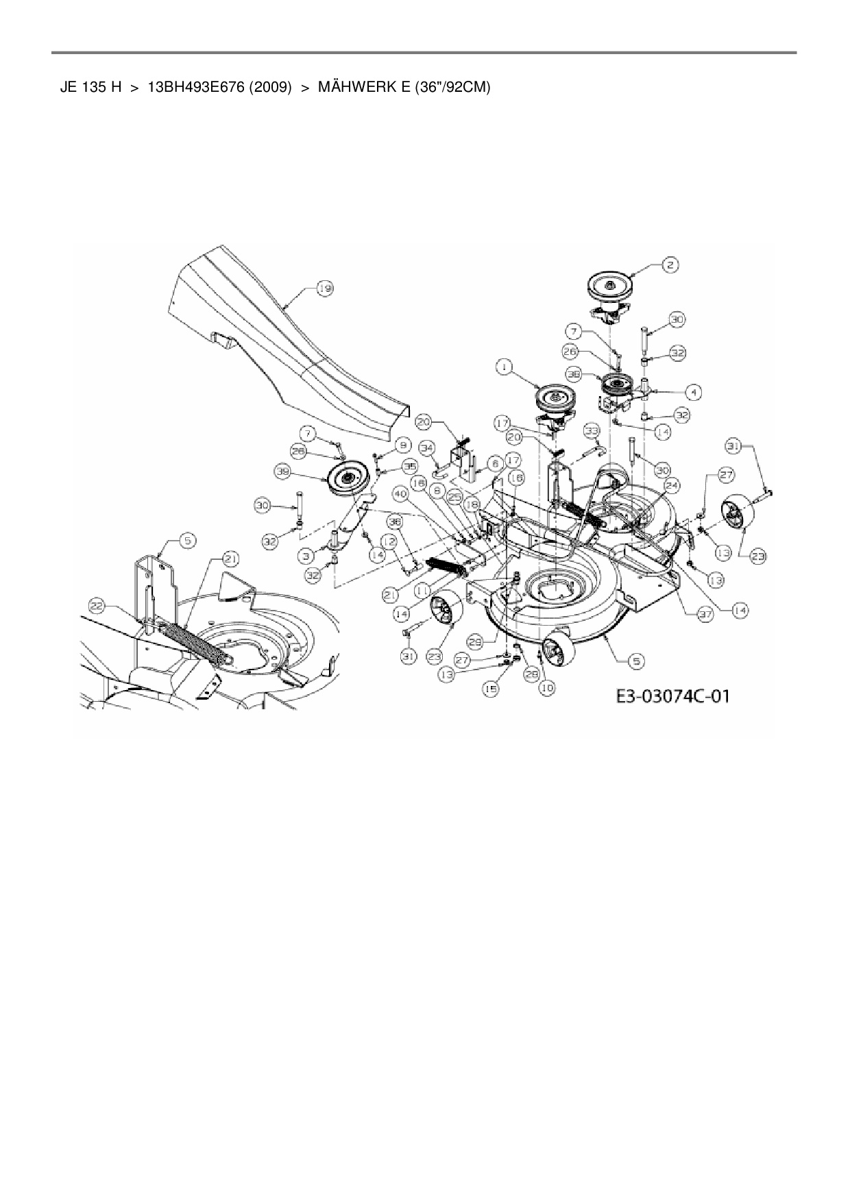 Ersatzteile für Rasentraktor MTD JE 135 H aus der Zeichnung Mähwerk E (36"/92cm):