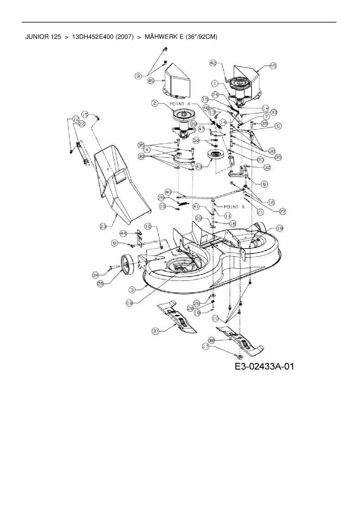 Ersatzteile für Rasentraktor MTD Junior 125 aus der Zeichnung Mähwerk E (36"/92cm):