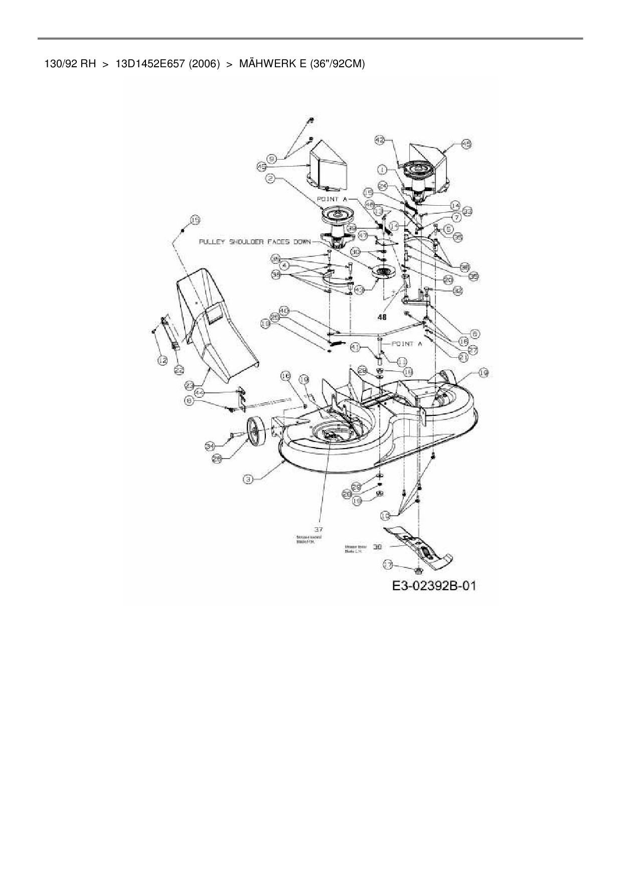 Ersatzteile für Rasentraktor Mastercut 130/92 RH aus der Zeichnung Mähwerk E (36"/92cm):