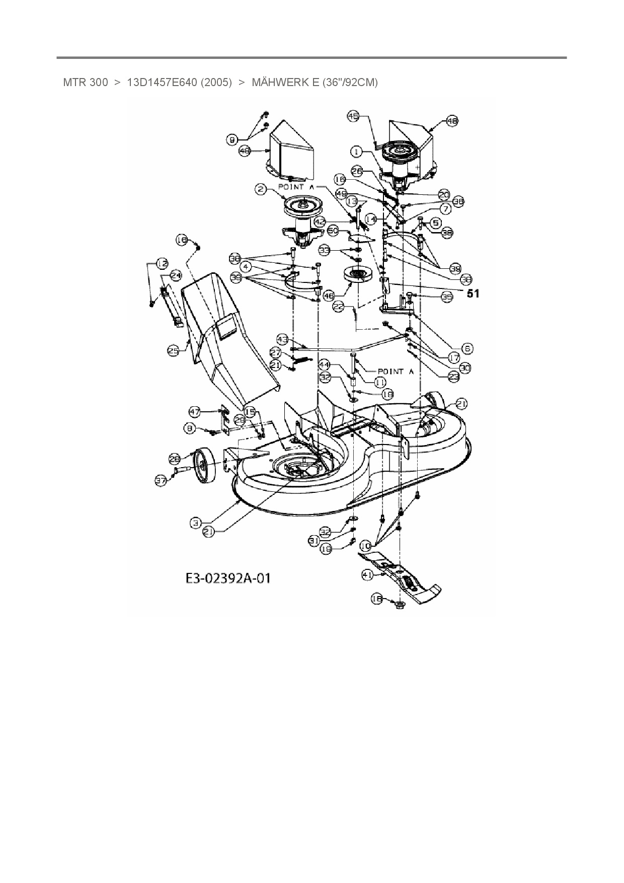 Ersatzteile für Rasentraktor Motec MTR 300 aus der Zeichnung Mähwerk E (36"/92cm):