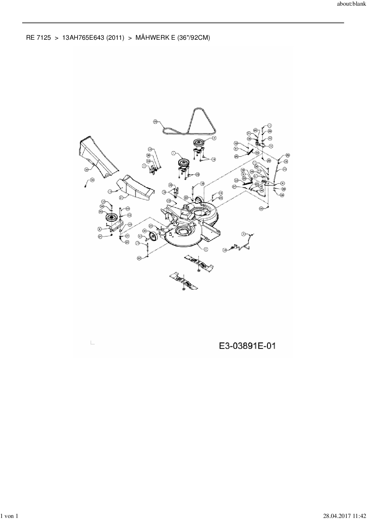 Ersatzteile für Rasentraktor Yard-Man RE 7125 aus der Zeichnung Mähwerk E (36"/92cm):