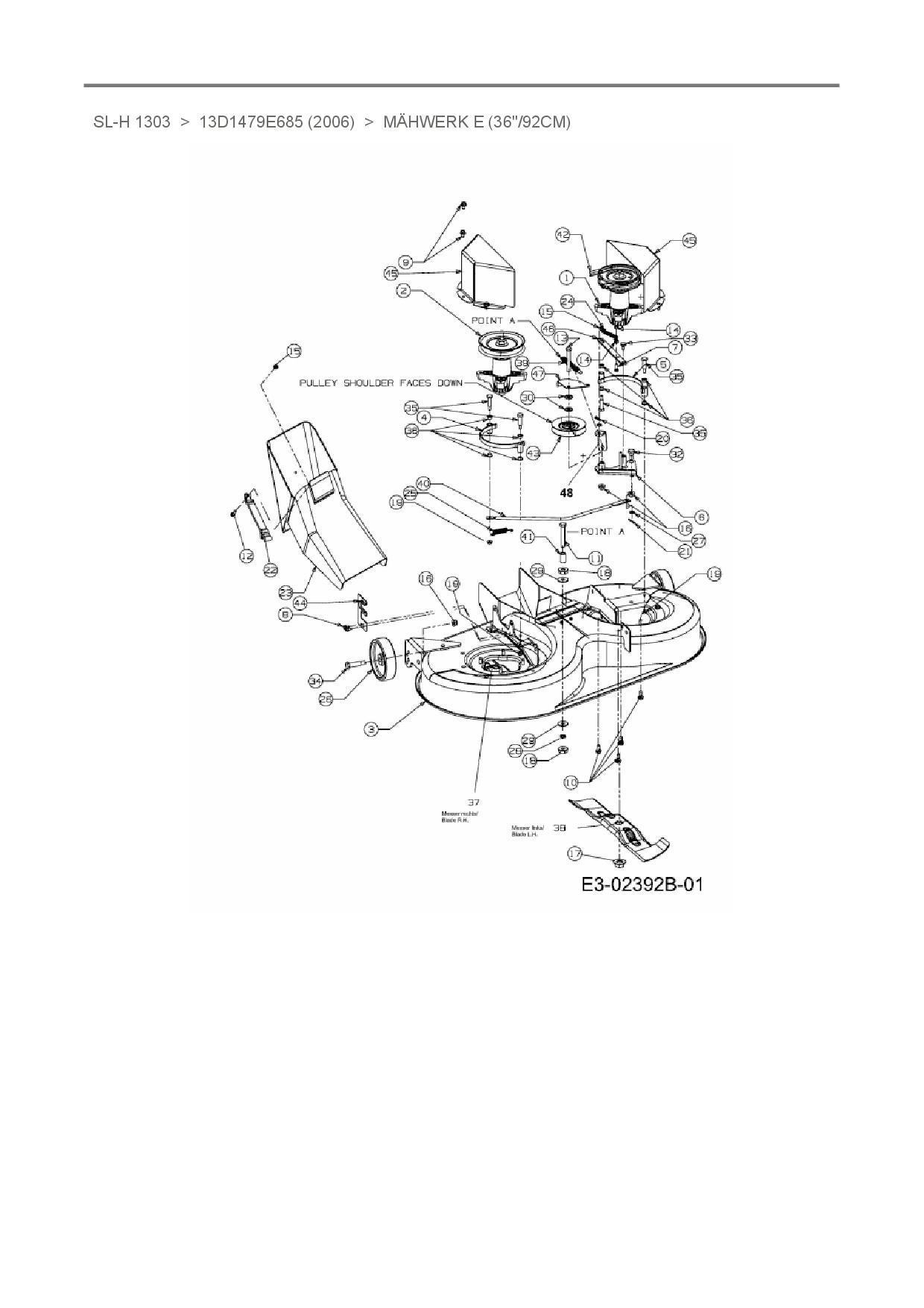 Ersatzteile für Rasentraktor Sunline SL-H 1303 aus der Zeichnung Mähwerk E (36"/92cm):