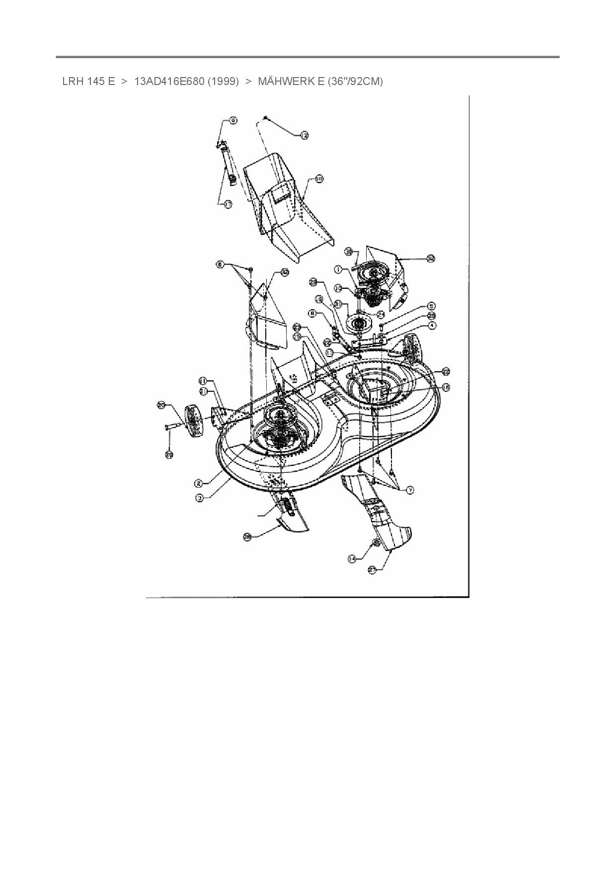 Ersatzteile für Rasentraktor White LRH 145 E aus der Zeichnung Mähwerk E (36"/92cm):