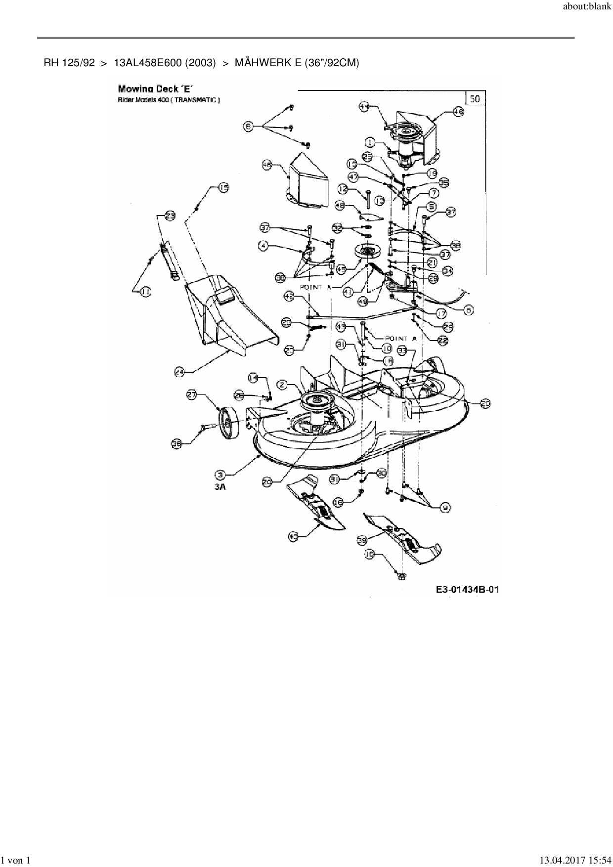 Ersatzteile für Rasentraktor MTD RH 125/92 aus der Zeichnung Mähwerk E (36"/92cm):