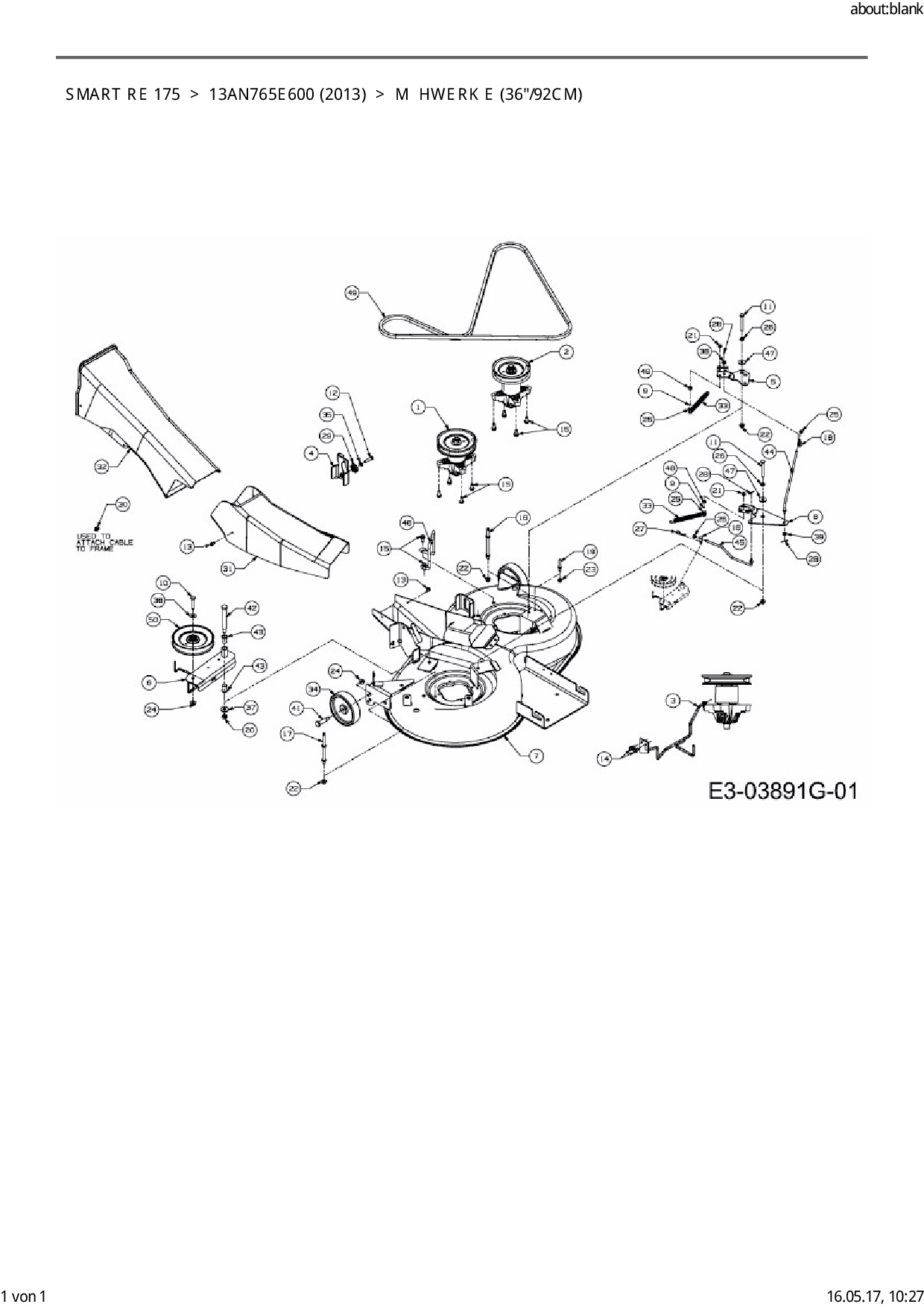 Ersatzteile für Rasentraktor MTD Smart RE 175 aus der Zeichnung Mähwerk E (36"/92cm):