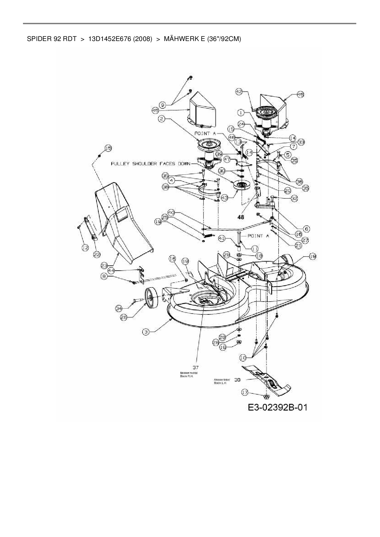 Ersatzteile für Rasentraktor MTD Spider 92 RDT aus der Zeichnung Mähwerk E (36"/92cm):