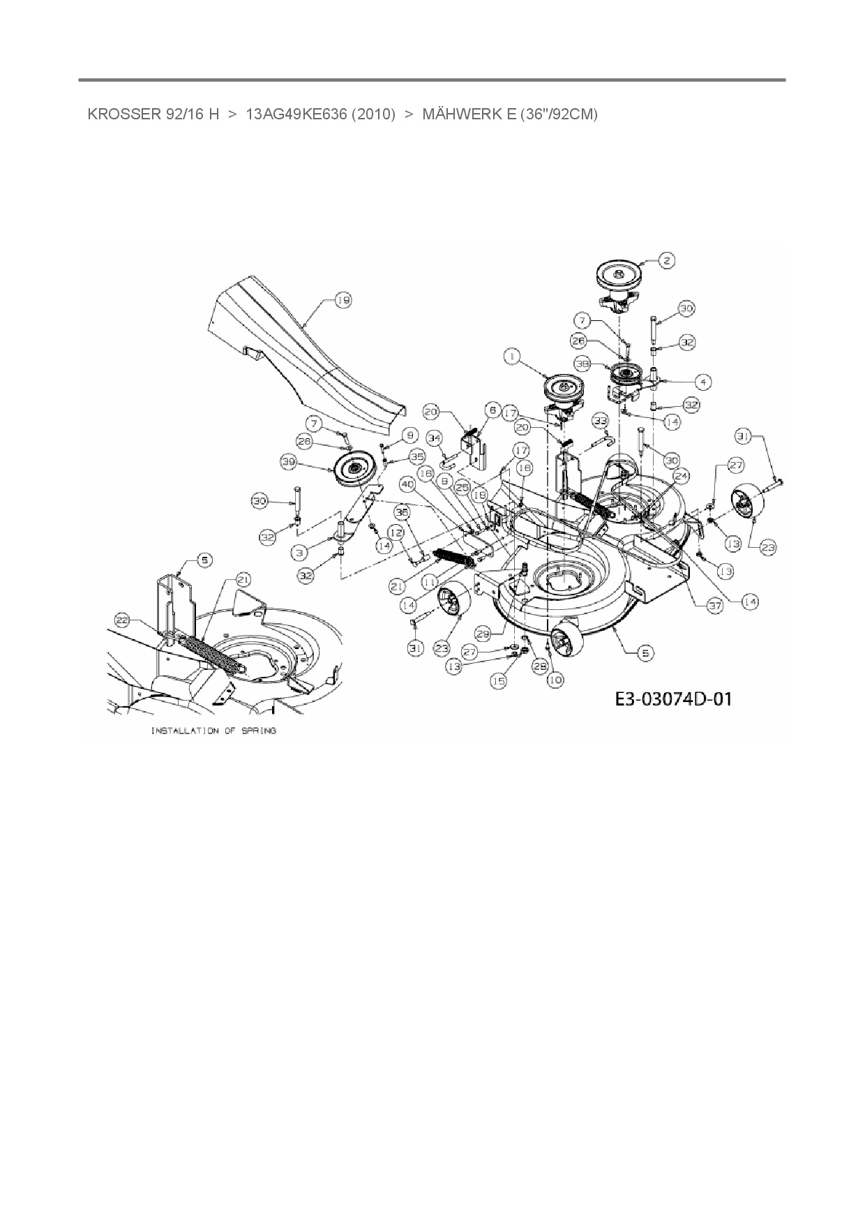 Ersatzteile für Rasentraktor Oleo-Mac Krosser 92/16 H aus der Zeichnung Mähwerk E (36"/92cm):