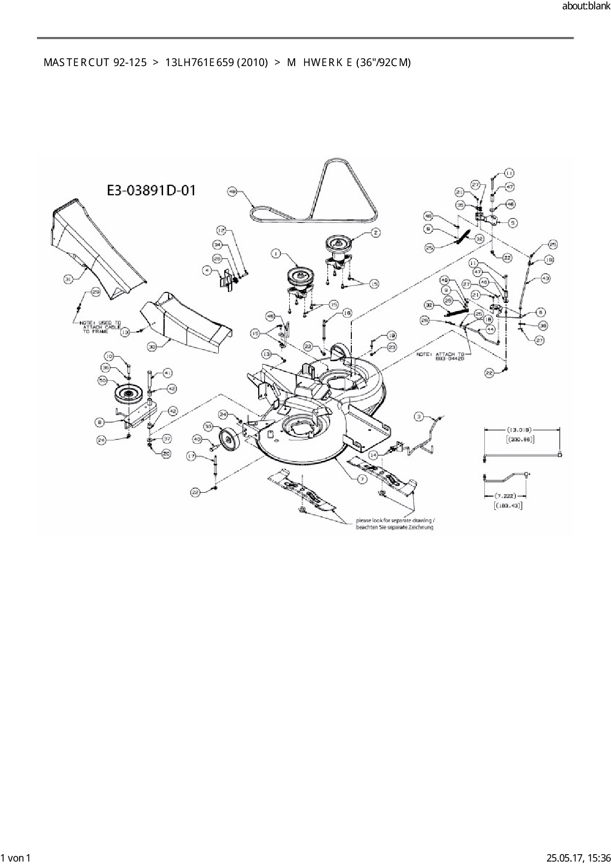 Ersatzteile für Rasentraktor Mastercut Mastercut 92-125 aus der Zeichnung Mähwerk E (36"/92cm):
