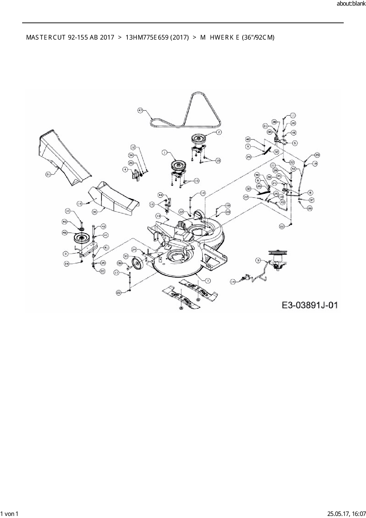 Ersatzteile für Rasentraktor Mastercut Mastercut 92-155 ab 2017 aus der Zeichnung Mähwerk E (36"/92cm):