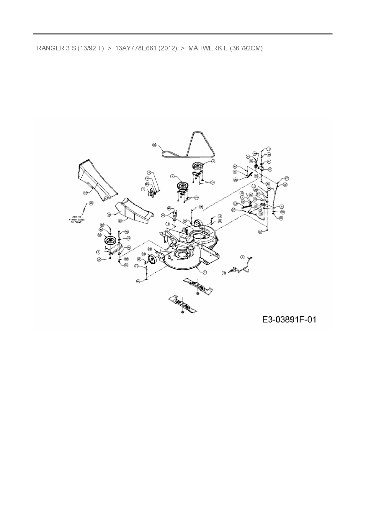 Ersatzteile für Rasentraktor Ranger Ranger 3 S (13/92 T) aus der Zeichnung Mähwerk E (36"/92cm):